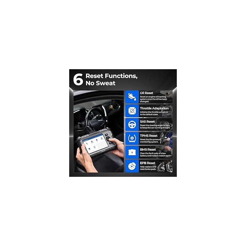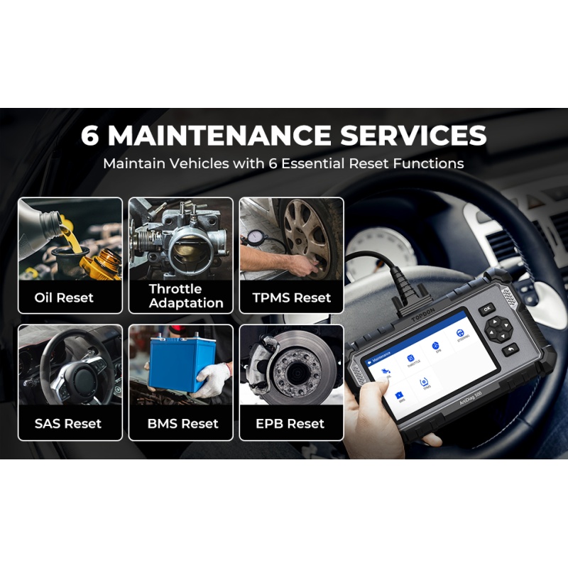 ArtiDiag500 autodiagnostika tööriist pakub olulisi funktsioone, nagu õli lähtestamine, drosselklapi kohandamine ja SAS/TPMS/BMS/EPB lähtestamine. Lähtestage hõlpsalt õlivahetuse indikaatorid, peenhäälestage gaasipedaali reageeringut ja kalibreerige roolinurga andureid uuesti, et tagada optimaalne sõiduki jõudlus ja hooldusmugavus.